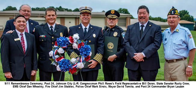 The event was three months in the making. The planning committee expanding beyond Post 24 to include members of the Johnson City Fire and Police Departments, Washington County/Johnson City Emergency Medical Services, Rolling Thunder Chapter 4, Veterans of Foreign Wars Post 4933 and other volunteers. The theme became clear during the initial meetings, it would be about “Remembrance”, not the terror of the day. We would celebrate the heroic actions of those “First Responders”. This was not to be about the American Legion Post 24 for as Veterans we know of and recognize heroism in others, this was to be the purpose.